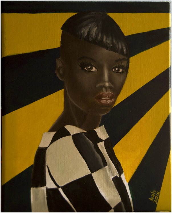 I am a native of Africa and have grown up with many beautiful black people around me. I started this painting quite a while back but just did not think that her skin tone was coming out right, and then, suddenly, it was there. Warm, dark chocolate. Now, I am pleased to present, my lovely black lady - enjoy!