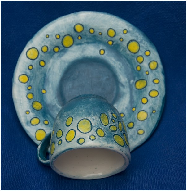 I can quite honestly say that the inspiration for the creation of this little piece came bubbling up from my heart. I really had great joy in creating this cup and saucer and spent most of the time working on it smiling like a silly kid!