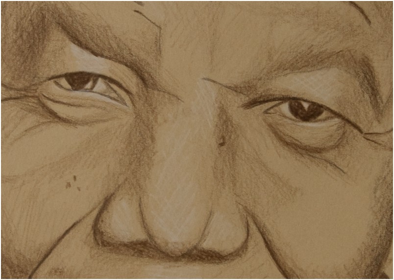 Nelson Mandela, brown pencil on corn colored paper.
